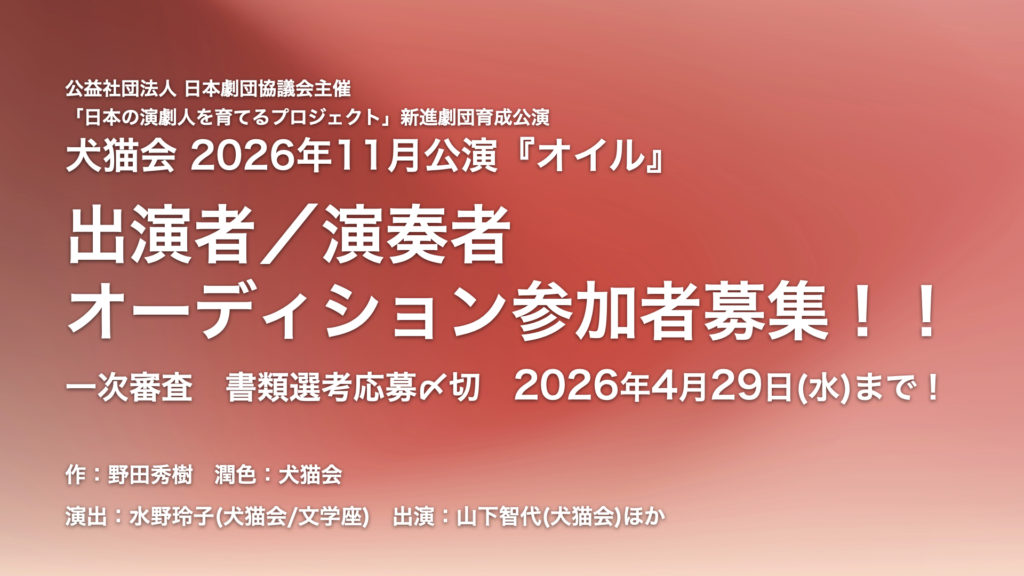 犬猫会 2026年11月公演『オイル』出演者/演奏者募集
