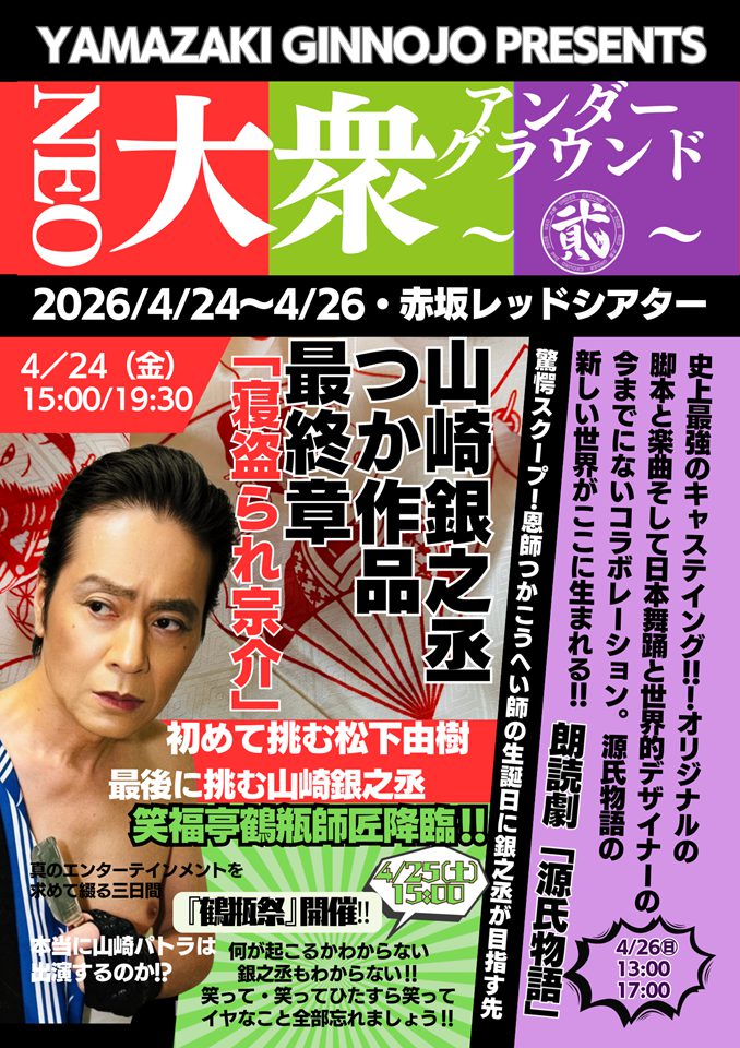 山崎「由樹さんをはじめ、たくさんの方々にお集まりいただきます。『NEO大衆アンダーグラウンド』は、僕が失敗を繰り返しながら、10周年を目指している大切なシリーズです。是非、劇場へお越しください」