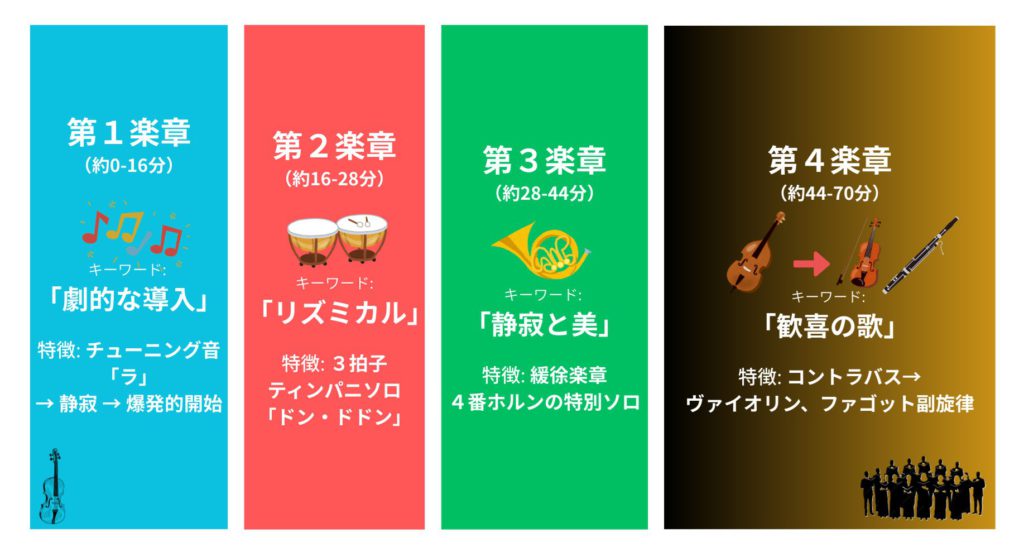 確かに第3楽章は他と比べて静かな楽章だけど、実はそういう聞かせどころもあるので、ぜひ「次何が起こるんだろう」って、ワクワクしながら聴いていっていただけたらいいかなと。