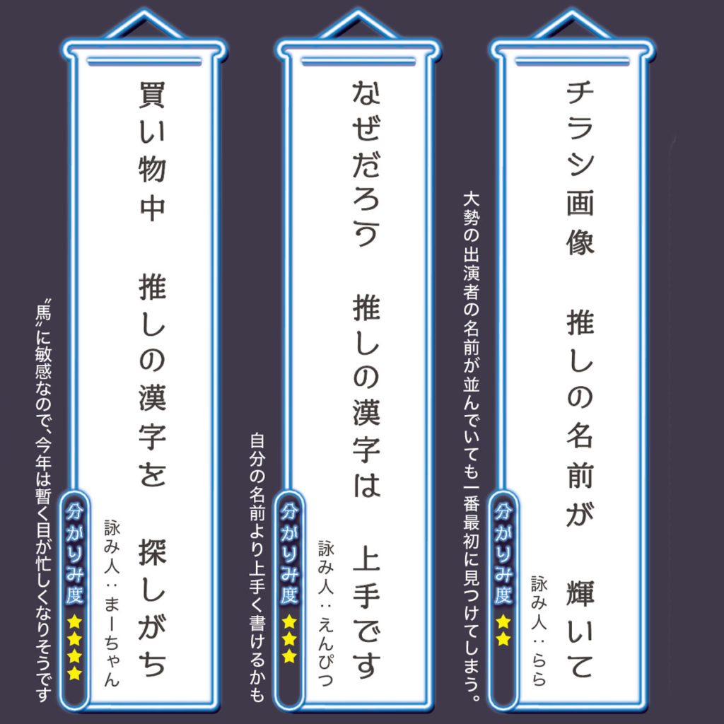 12月12日の「漢字の日」にちなんだお題でした。推しの存在を思い浮かべながら、どんな漢字がぴったりだろうと考えるのも楽しいです。