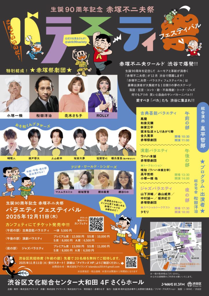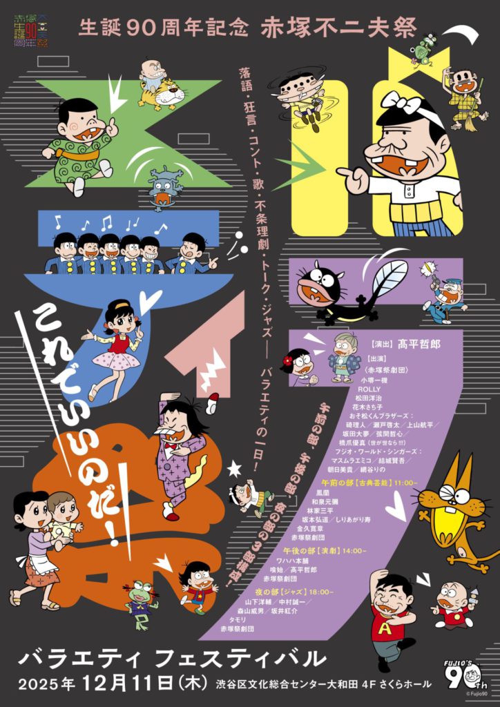 2025年12月、大和田さくらホールにて、赤塚不二夫生誕90周年を記念した特別公演『赤塚不二夫祭 バラエティフェスティバル 〜これでいいのだ!〜』を開催。