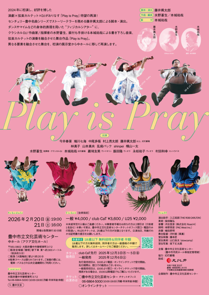 「Play(遊ぶ/演じる/演奏する)」が重なり合い、「Pray(祈り)」の物語へと昇華する舞台『Play is Pray』が、2026年2月20日(金)・2月21日(土)、豊中市立文化芸術センター 中ホール(アクア文化ホール)で再演。当センター初の演劇制作作品として2024年2月に初演された本作品は、全ての回で満員御礼となり好評を博した。