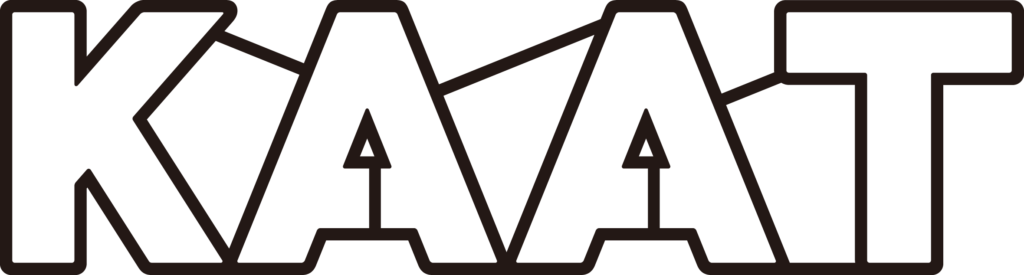 佐藤卓氏デザインによるKAATロゴ、そのロゴをデザイナーの近藤一弥氏と吉岡秀典氏が15周年を記念してリデザインしたバナーを展示いたします。