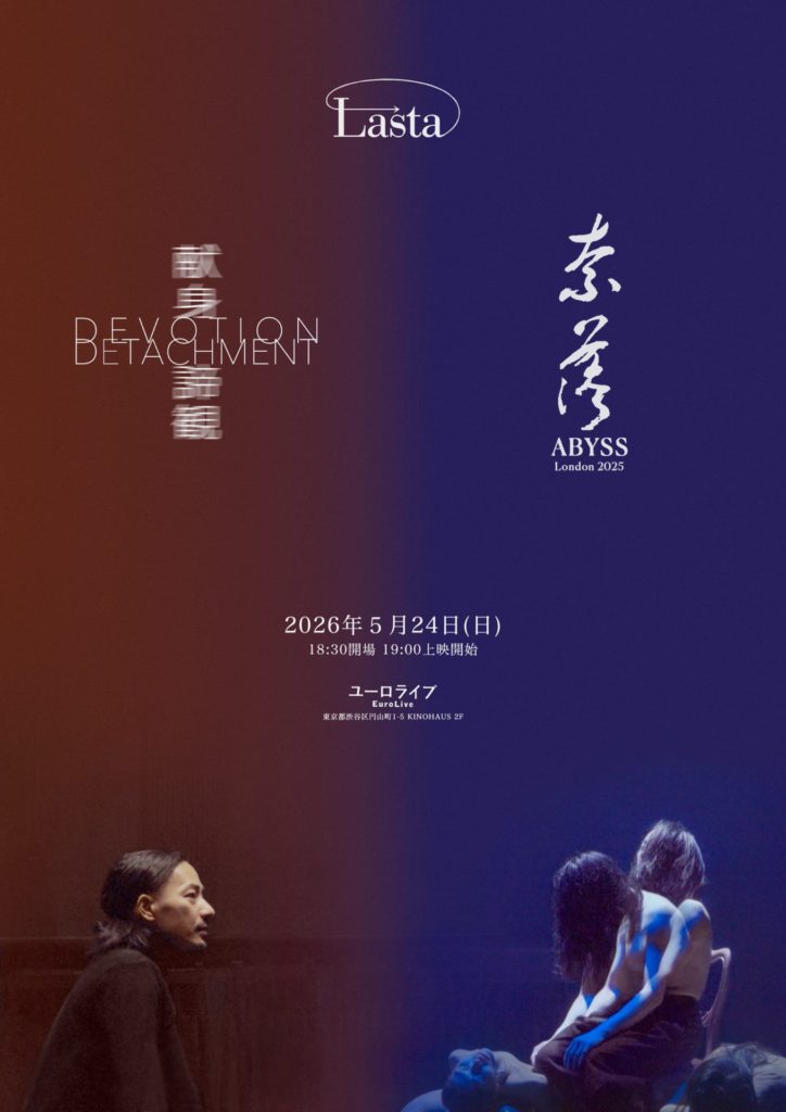 昨年9月にロンドンThe Coronet Theatreで初演を迎えたLastaを追ったドキュメンタリー作品と、「奈落」本番映像作品の2作品が、5月24日(日)ユーロライブ(東京・渋谷)にて、一夜限りで上映されることが決定した。