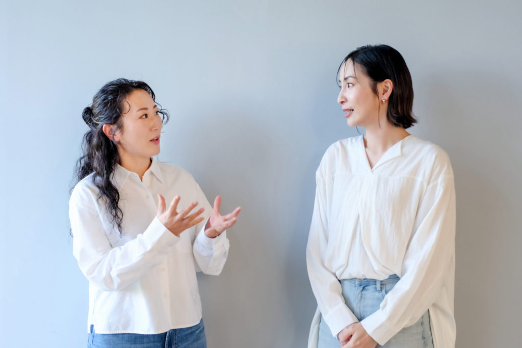 真飛 「ひとり芝居」と思うと身構えちゃうので、私たち、見出したんです。巻き込みます、客席を。ひとりじゃなくて、客席も含めて“みんなの芝居“。劇場はカウンセリングルームで、観に来てくださるお客様もいろんな悩みや聞いてほしいことを抱えて来ている。そこでたまたま私の番が来たから喋ってます、という感じです。お客様へ問いかけるセリフもたくさんあるので、そういうときにみんな普通に頷ける距離感、同じ土俵で、みんなが私の話を「わかる」と聞いてくれる場所ぐらいの感覚がいいなって言ったら、増岡さんが「それ、めっちゃいい!」って共感してくれました。