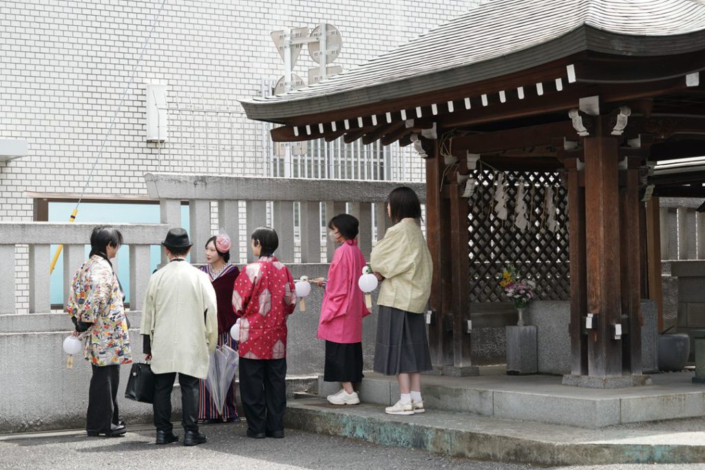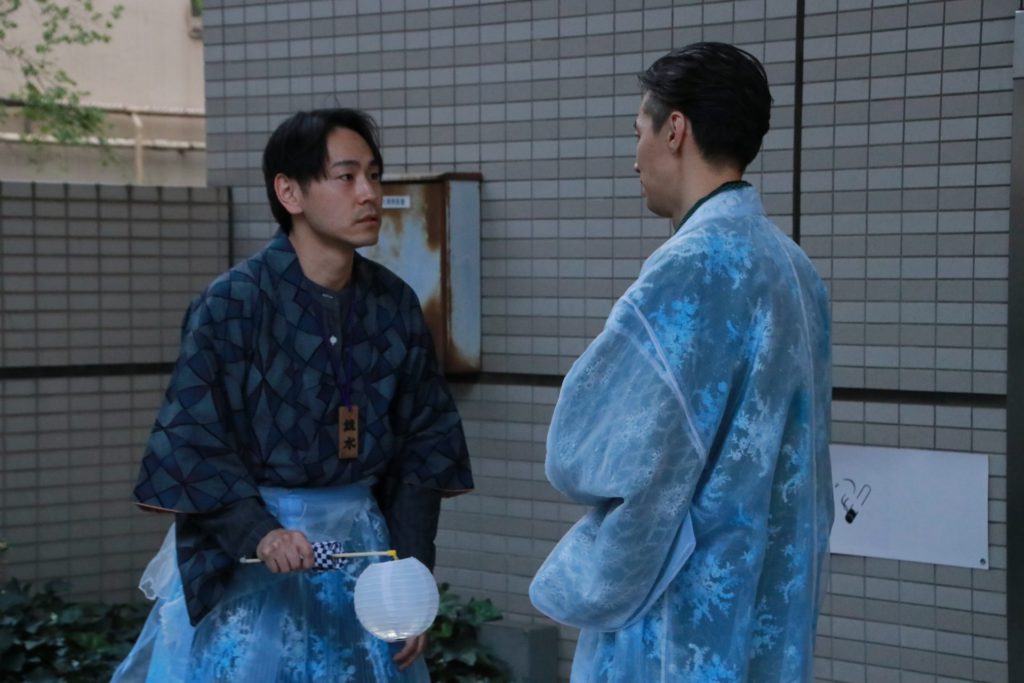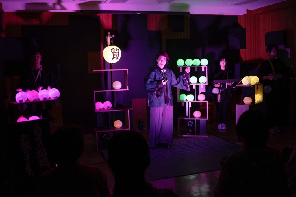 店に置かれた誰かの記憶――提灯を一つ受け取って街に出る。黒い羽織を着た”灯り番”たちに誘導されながら少し歩くと、現代の神楽坂の街の中で、昭和や明治の時代の人物――役者扮するキャラクターに出会う。