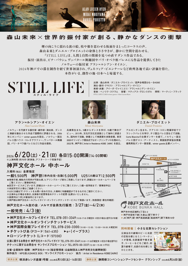 2026年6月、神戸文化ホール(指定管理者:公益財団法人 神戸市民文化振興財団)は、横浜赤レンガ倉庫1号館、静岡県コンベンションアーツセンター グランシップと連携し、現代の舞台芸術界で最も注目を集める演出家・振付家の一人、アラン=ルシアン・オイエンの『STILL LIFE -スティル・ライフ-』を上演する。