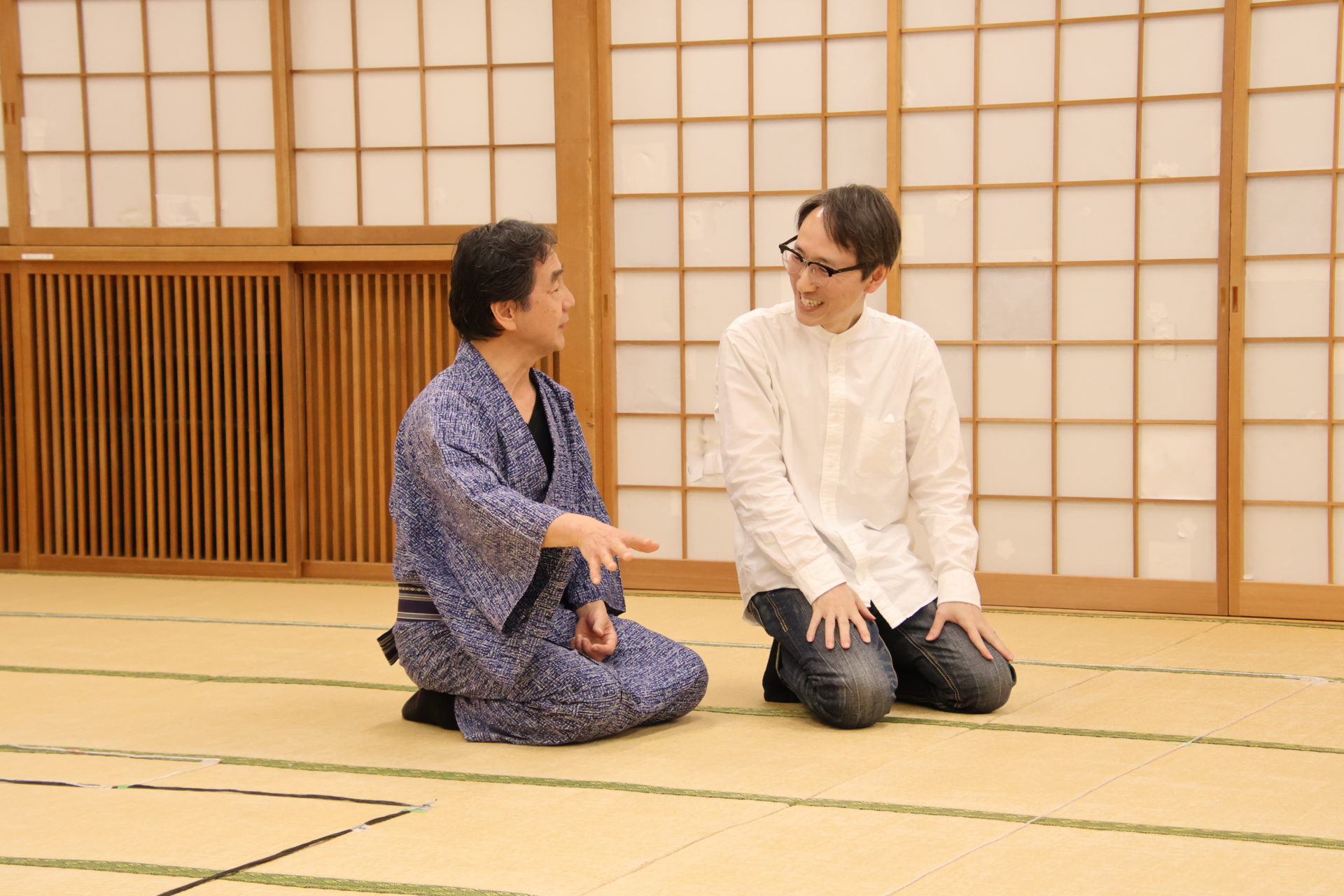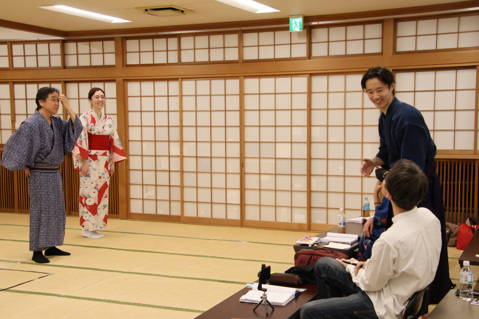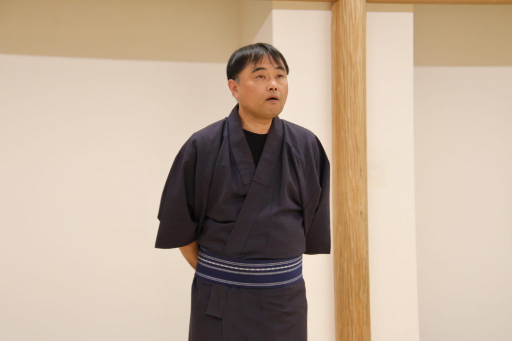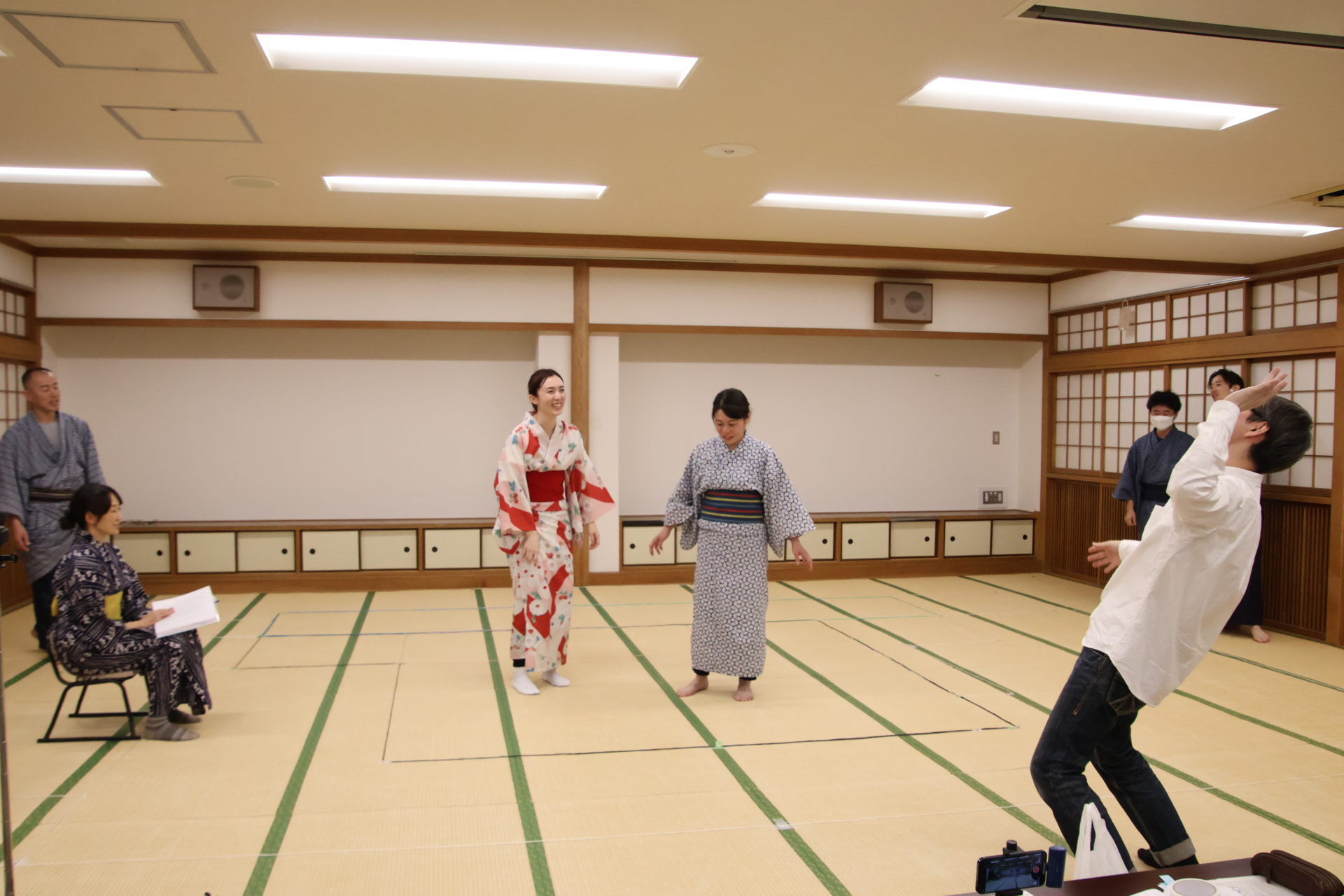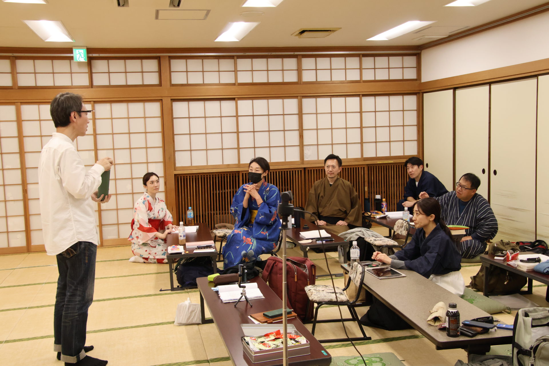 この日の稽古は、シーンを区切って動きの細部やそれぞれの心情を確認する返し稽古が行われた。取材に訪れたときには、物語が大きく動き出す第三章が行われていた。この場面は、岩牢に閉じ込められていた新九郎と多紀が対面し、自分の出自や事件の背景を知らされるシーン、そして多紀が初めて幽閉されている重興と会い、その異変に気付くという重要なシーンだ。キャストたちは和服に身を包み、和服での動き方を体に馴染ませていく。