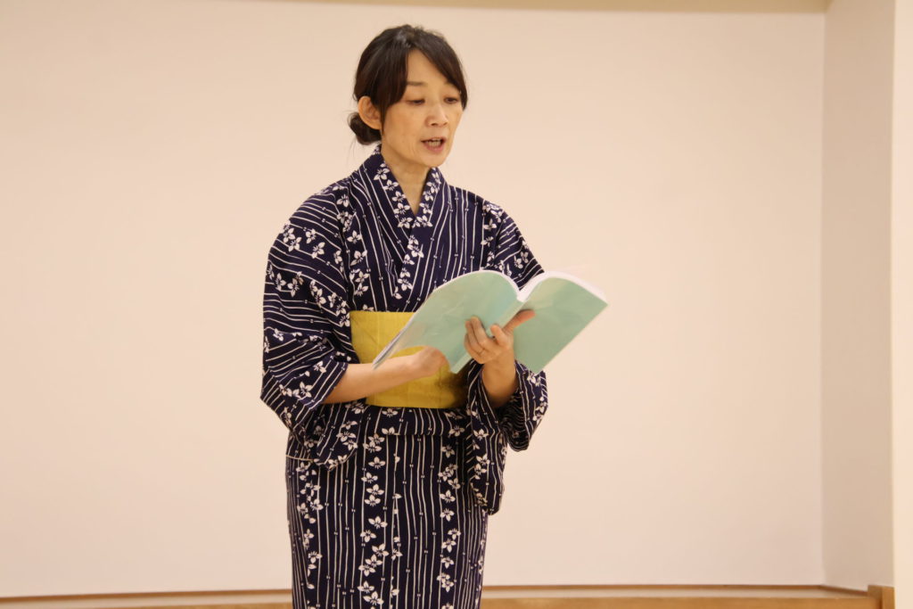 物語を進める、というよりは、人物たちの状況や心情を補足する役割を担っていると思われる“語り部”は、ステージ上を移動しながら、登場人物たちに寄り添い、注釈に当たる部分や登場人物たちの心のうちを代弁する。これによって観客の物語への理解をより深め、原作未読であっても物語にしっかり入り込むことができる。Mido Laboの作る舞台は、それぞれの作家の魅力をどうやったら一番に感じられるのかを演出の根本に、お芝居を観ているかのような、読書をしているかのような不思議な時間を届けることを目指しているが、まさに物語がスッと入り込んでくる感覚を味わえた。
