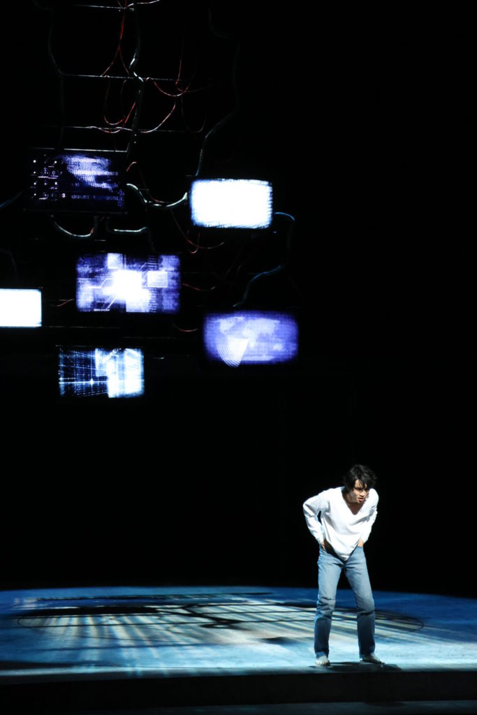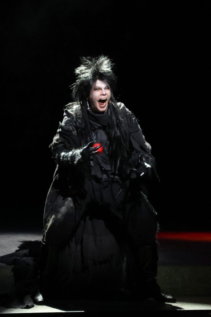 アイドル歌手として活躍しながら、実は壮絶な過去を持ち「キラ」を崇拝していく弥海砂の鞘師里保は、自身もアイドルとして大活躍していた出自を役柄に投影させ、やはり狂気にも似た献身と愛を貫いていく海砂を演じている。今回の上演で衣装や髪型のイメージが、ガラリと変わったのがこの役柄で、鞘師が演じることから生まれた変更なのか、この変更が先にあって鞘師がキャスティングされたのかはわからないが、いずれにせよ作品が生まれて10年のメモリアルが、新たなはじまりでもあることを強烈に想起させる存在になった。何より健気さが前に出ていて、死神レムとのやりとりを含めた彼女の選択が、物語を大きく動かしている。