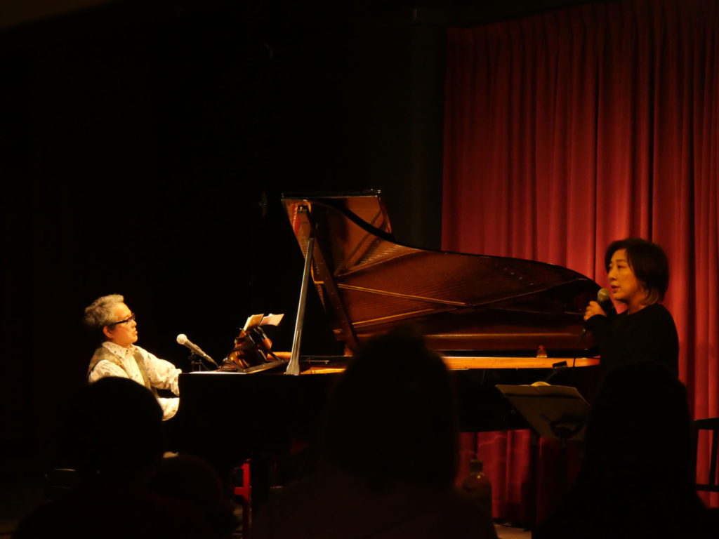 普段、セリフを人前で口にする、という機会はほぼないが、実はセリフを書く時は、セリフを口に出しながら書くという山口が、人前でこうしてセリフを読むのを聞けたのも大変貴重で、その上、この日の谷川の即興ピアノの貢献も絶大だった。台本のセリフを読みながら鍵盤に指を走らせ、客席を物語の時代や空間に連れて行ってくれた。