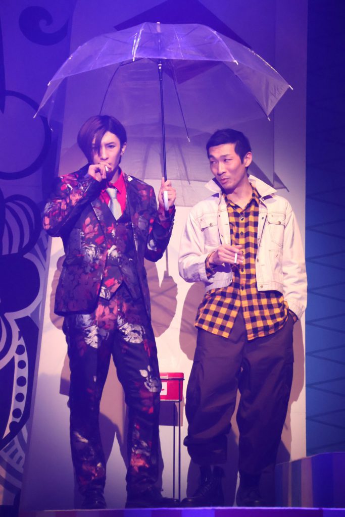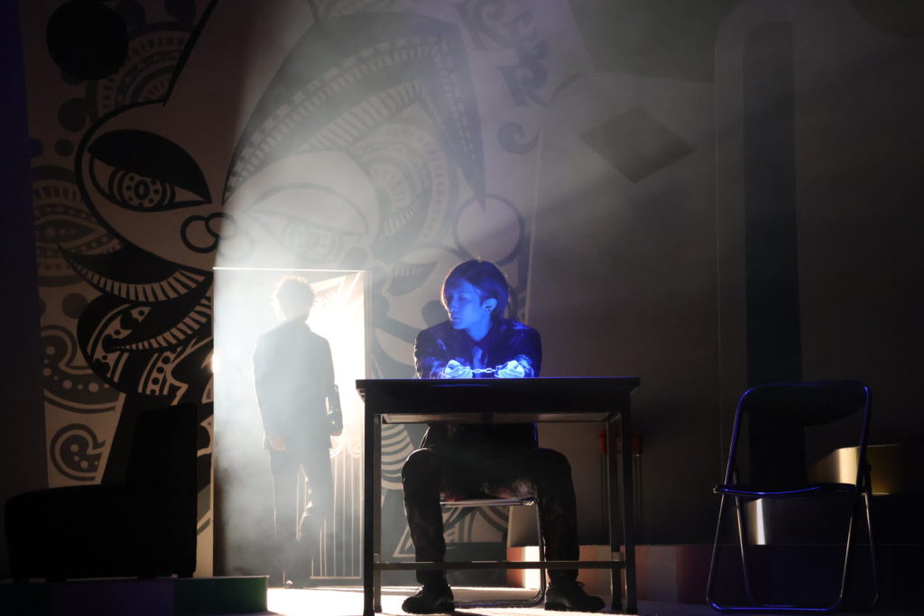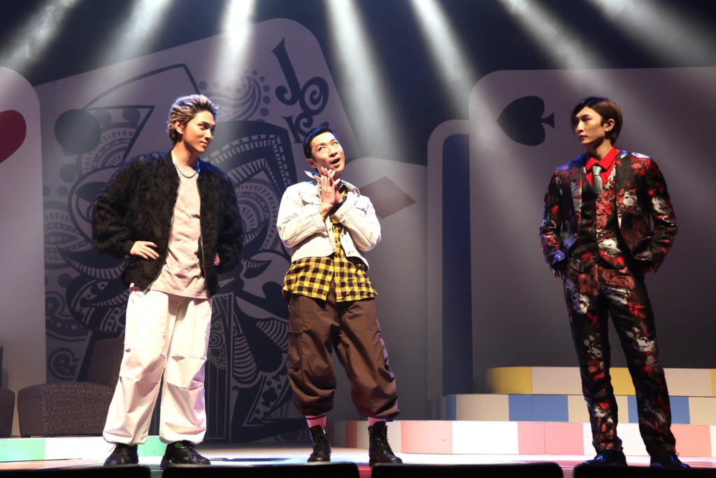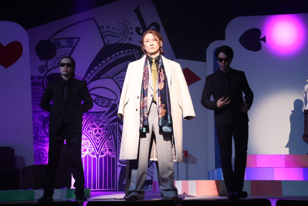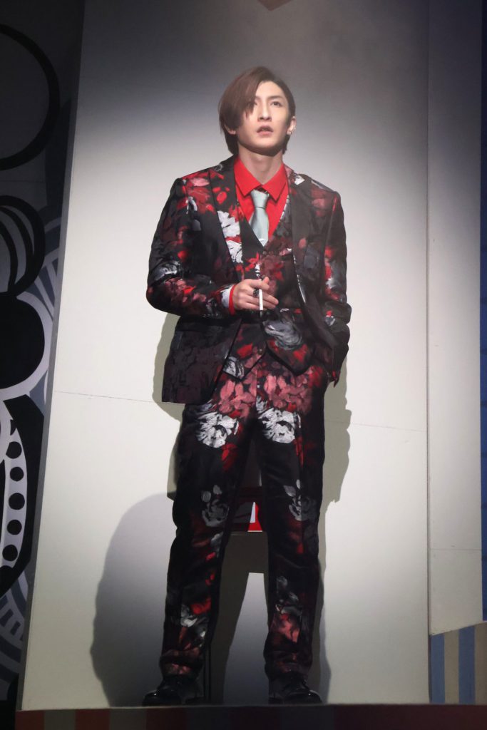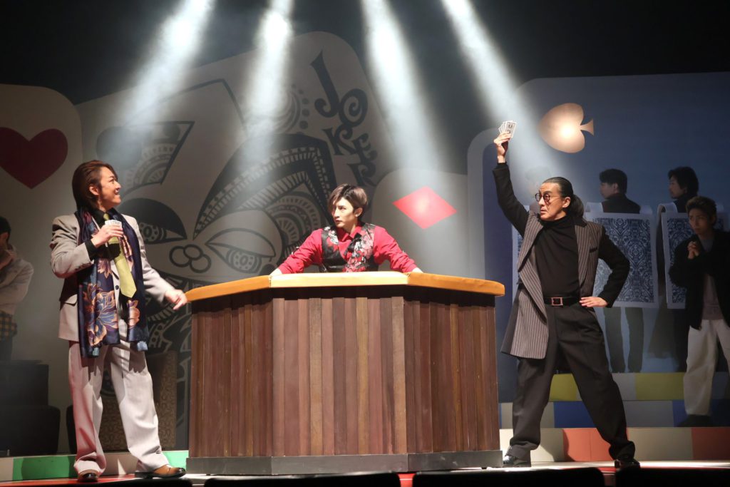 その舞台で、命名から米山のなかに相当なこだわりがあるのだろうと感じられる登場人物では、まず生まれながらに嘘をつく男=ベイビーブラフ=タイトルロールの奥窪想(おくくぼ・おもい)を演じる梅津瑞樹の二枚目ぶりが際立っている。天才詐欺師でありつつ、世にいう義賊でもある想の思いっきり拗れていて、だからこそむしろ一周回ってわかりやすいたった一人の姉への心情を、梅津がクールなままの表情からからなおくっきりと見せる様が絶品。「そうくる?」というかなり馬鹿馬鹿しい(褒めている)回想シーンを、とことん拒否しながら瞬時に馴染んでいく変身の妙も含めて、自然に応援したくなる「ベイビーブラフ」として存在していた。誰にでも着こなせないだろう柄物のスーツも恐ろしく似合っている。