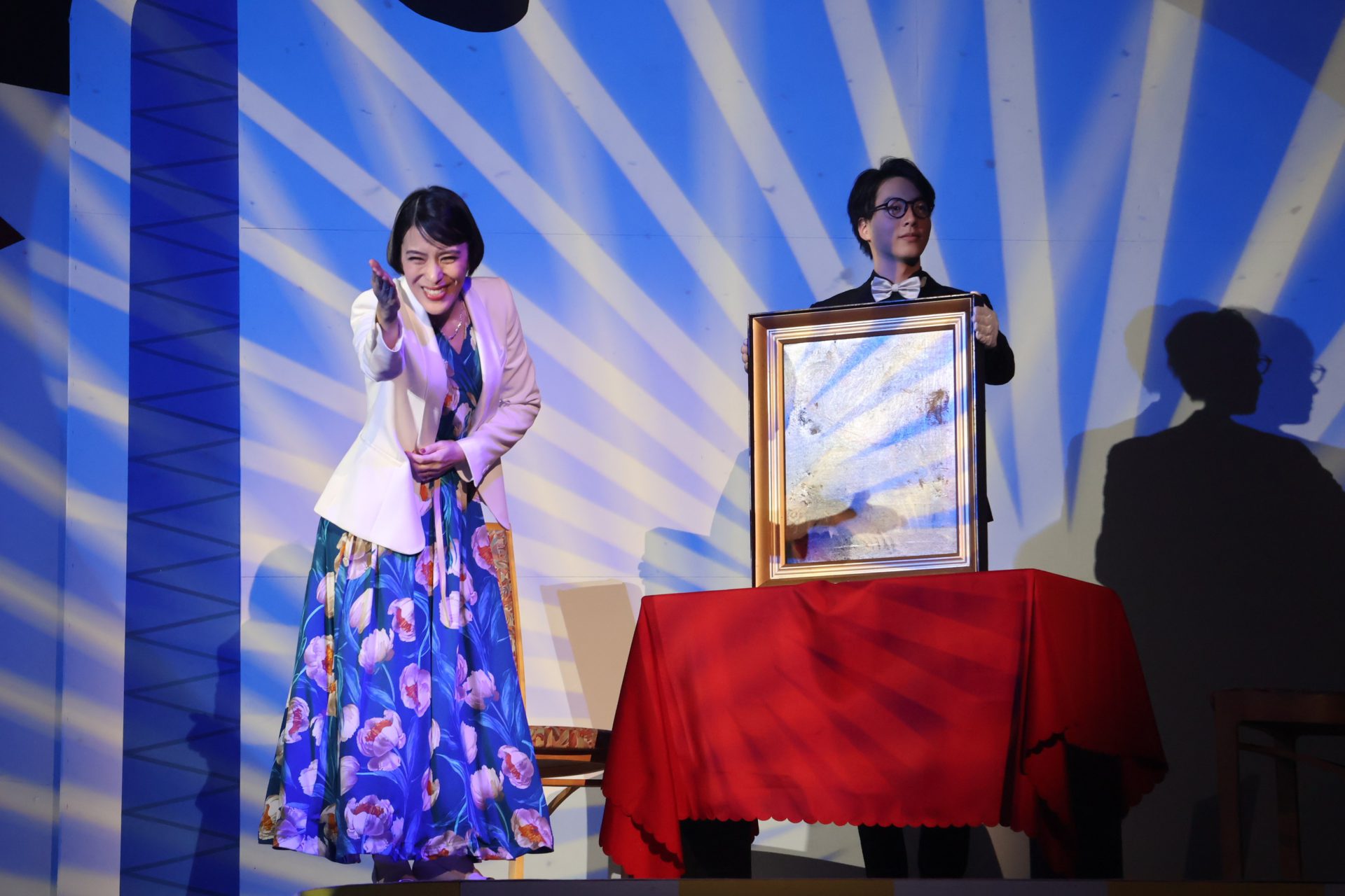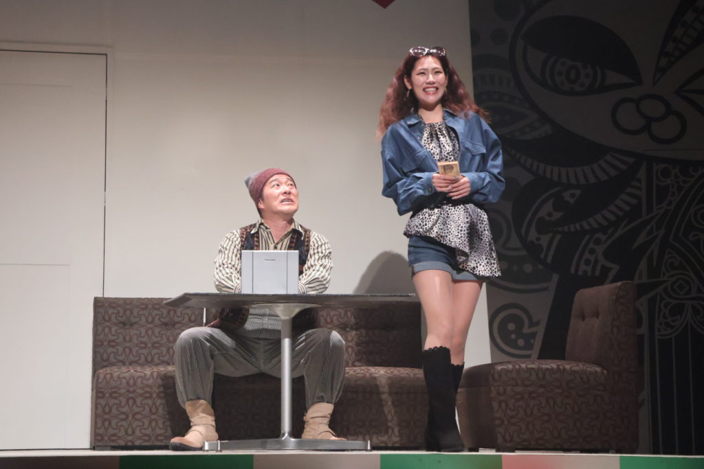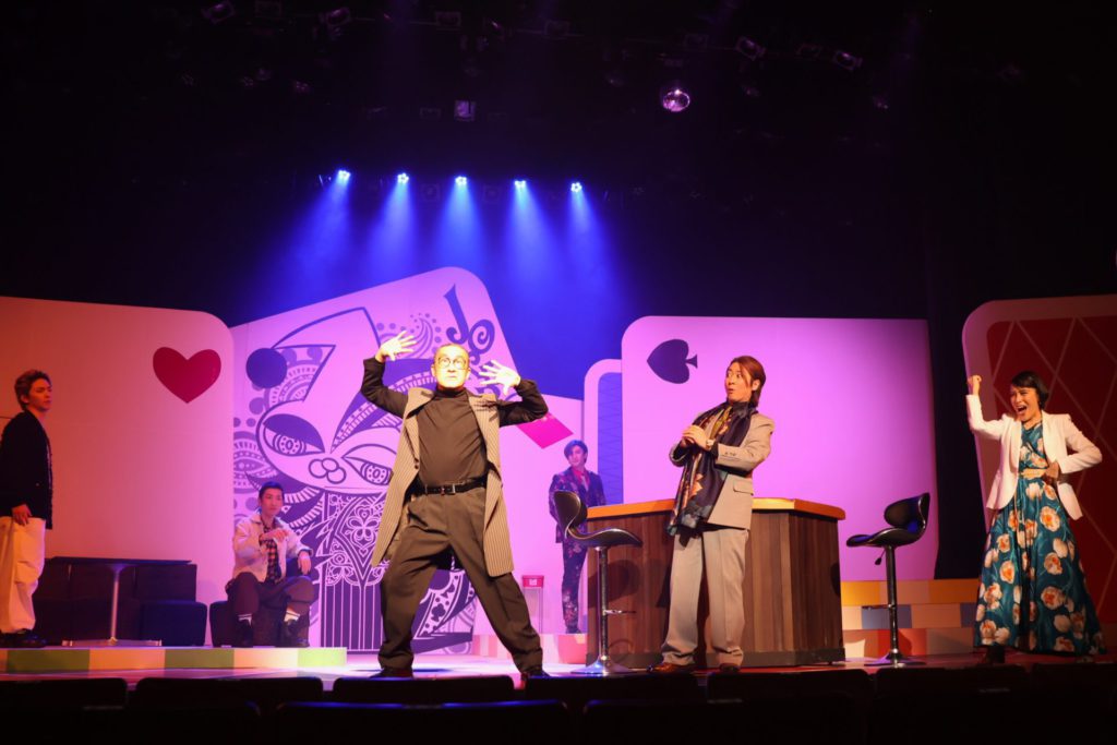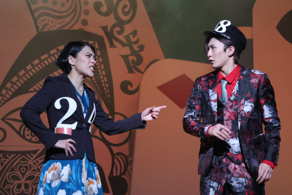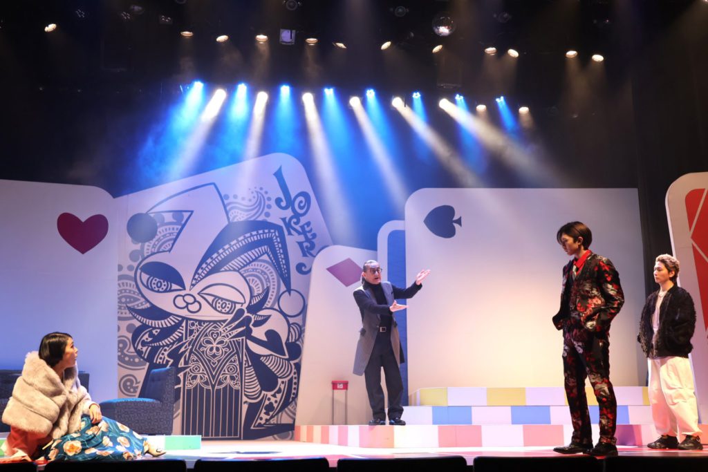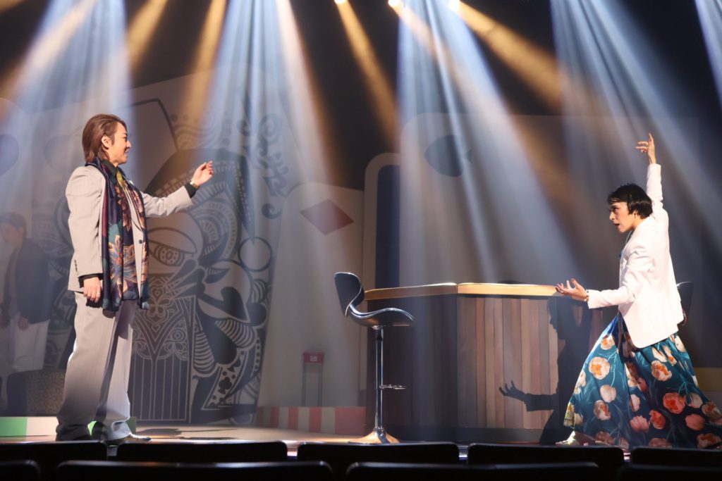 弟の想とは対照的に、嘘をつくだけで身体にまで反応が出てしまうほど真っ正直な姉、真(まこと)の小玉久仁子は、劇団ホチキスの顔としての圧倒的な存在感をこの作品でも縦横に発揮している。濃いと言ってしまえば、文字通り強烈に濃い演技なのだが、それが悪いと言っている訳ではないことをくれぐれも強調させてもらった上で、あー小劇場を観た!という感覚につながる濃さとは確かに異なる、不思議な清心さをも発揮するのが小玉の唯一無二の魅力。トランプをモチーフにした舞台美術をはじめ、総合アートディレクターとしての目線の確かさも健在で、米山ワールドであり、小玉ワールドでもある劇団ホチキスの舞台を支えている。真役については、本当にこうして書いていて、うーんと思うほど何も言えないので、是非実際の舞台を観て欲しい。