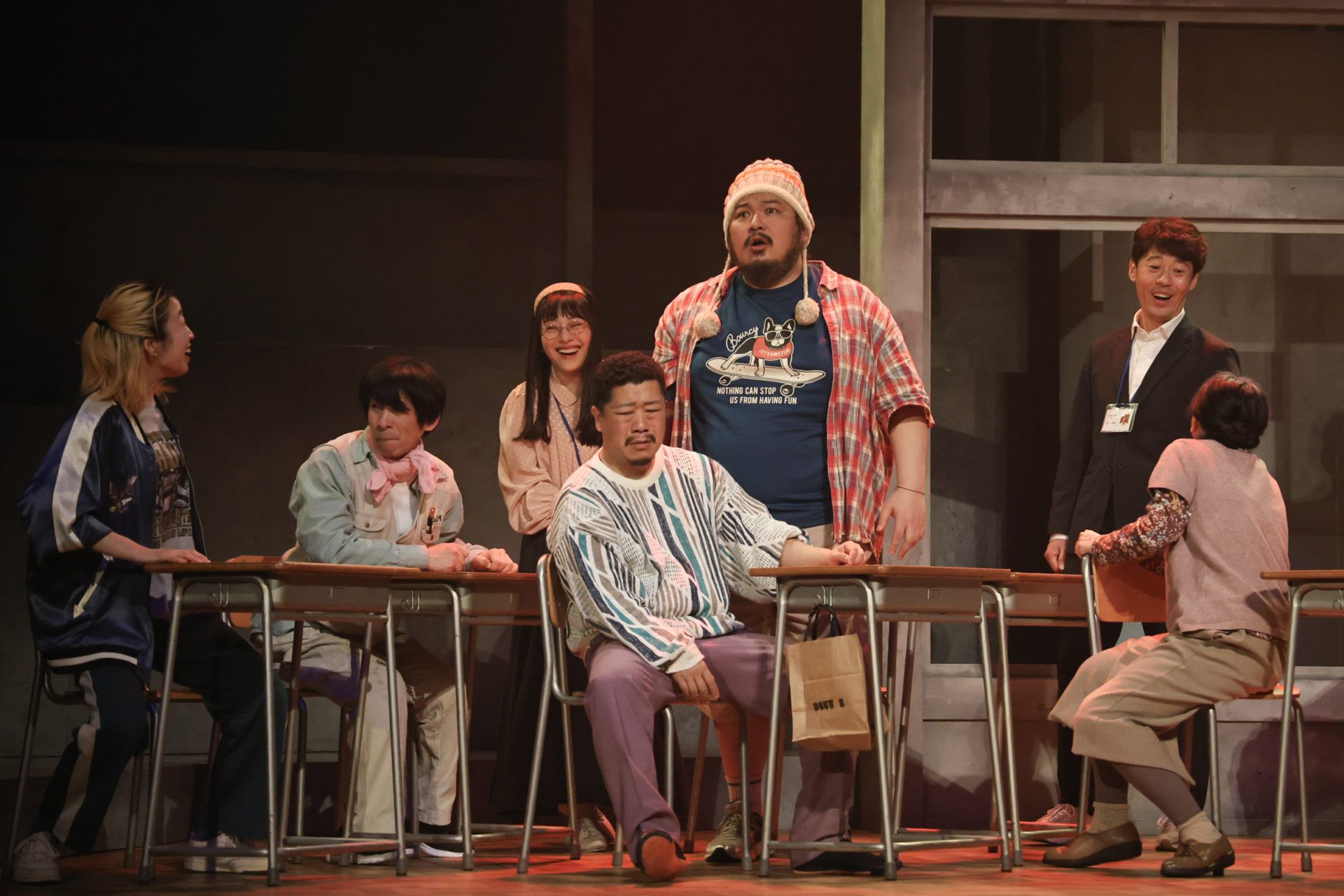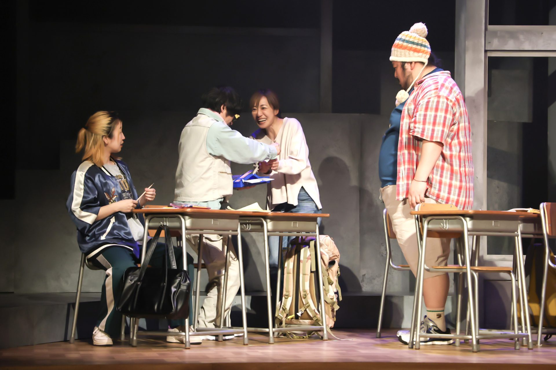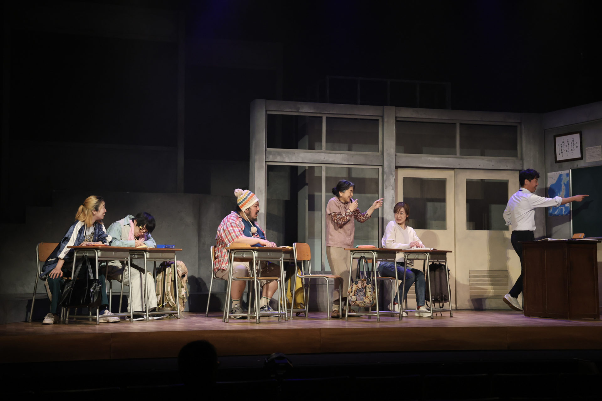 とにかくおしゃべりな年配女性、庄司スミはたむらもとこ、金髪スカジャンで口が悪い元ヤン風の女性「みっちゃん」こと林美津子は宮後マミ/祐真キキ、おとなしそうなオタク風の青年、手嶋敏夫は松本実、身長180cmで体重150kgはありそうな巨漢ながら子どものような言動の男性、大里郁弥は米本学仁、そして少し陰のある中年女性、早川成美を及川奈央が演じている。登場する生徒は、この5人。年齢も育った環境もバラバラだ。