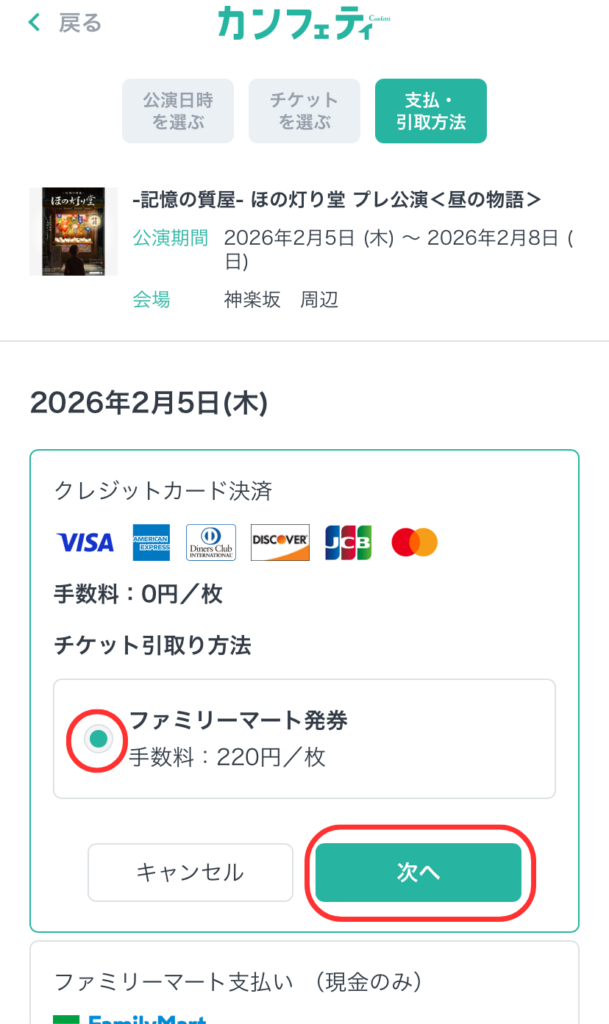 ファミリーマートでのお支払いを選択した方は、期限までにお支払・チケットをお受け取りください。