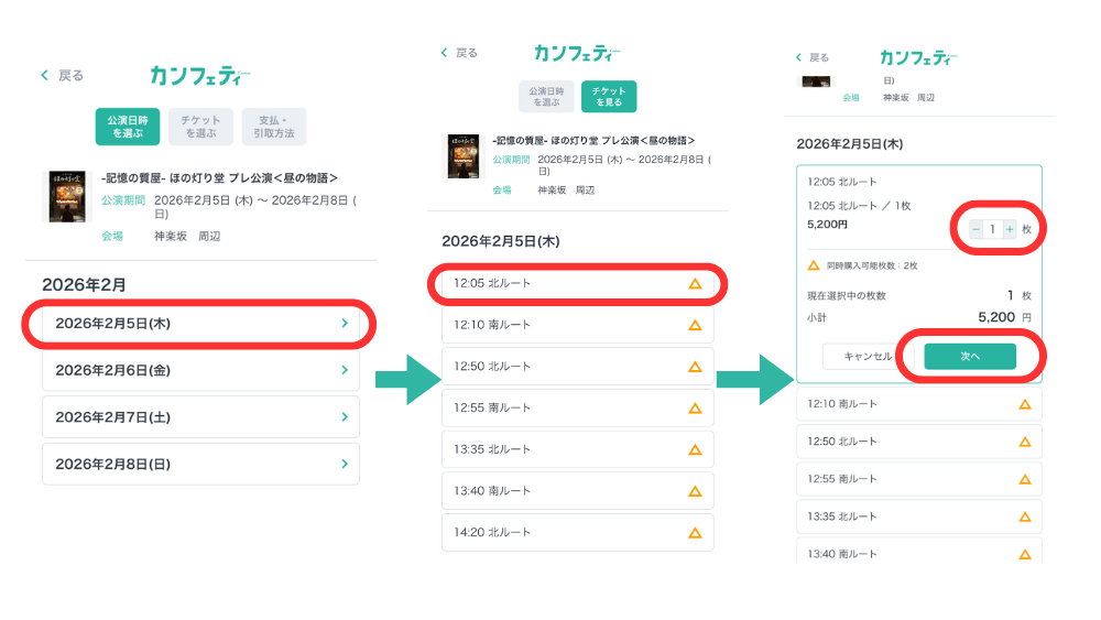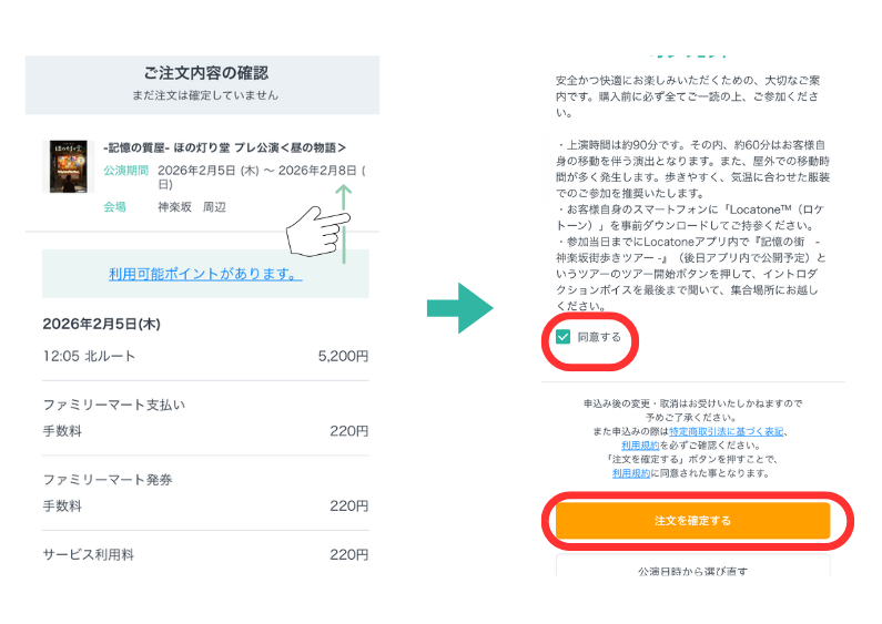 選択した日時、枚数、お支払い金額を必ずご確認ください。