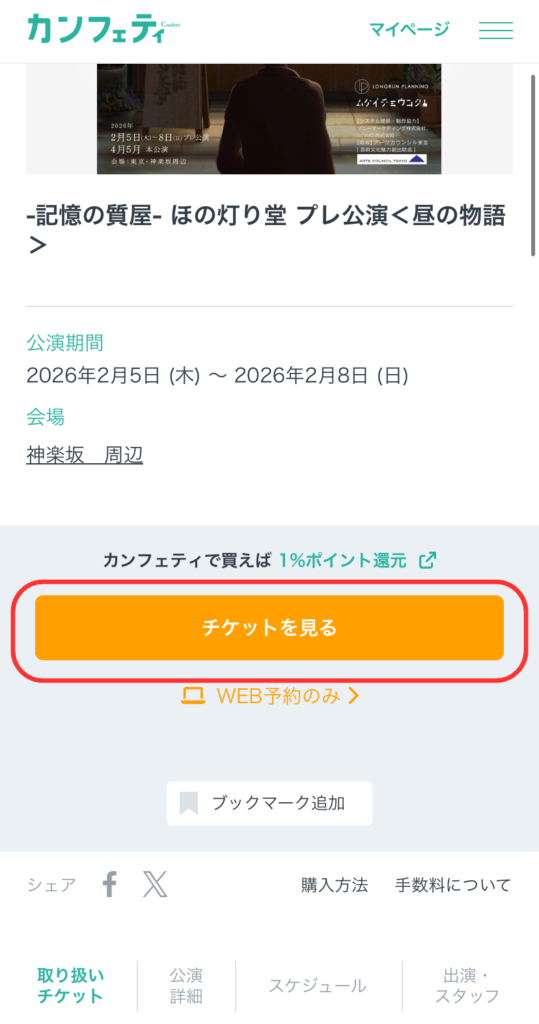 2)【チケットを見る】を選択して下さい